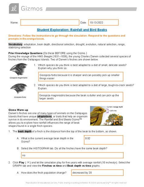 Read gizmos answer rainfall and bird beaks English PDF PDF